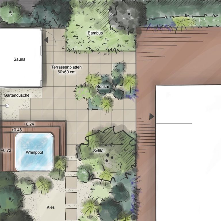 Gestalterisches Gesamtkonzept für den Garten oder einen ausgewählten Bereich.